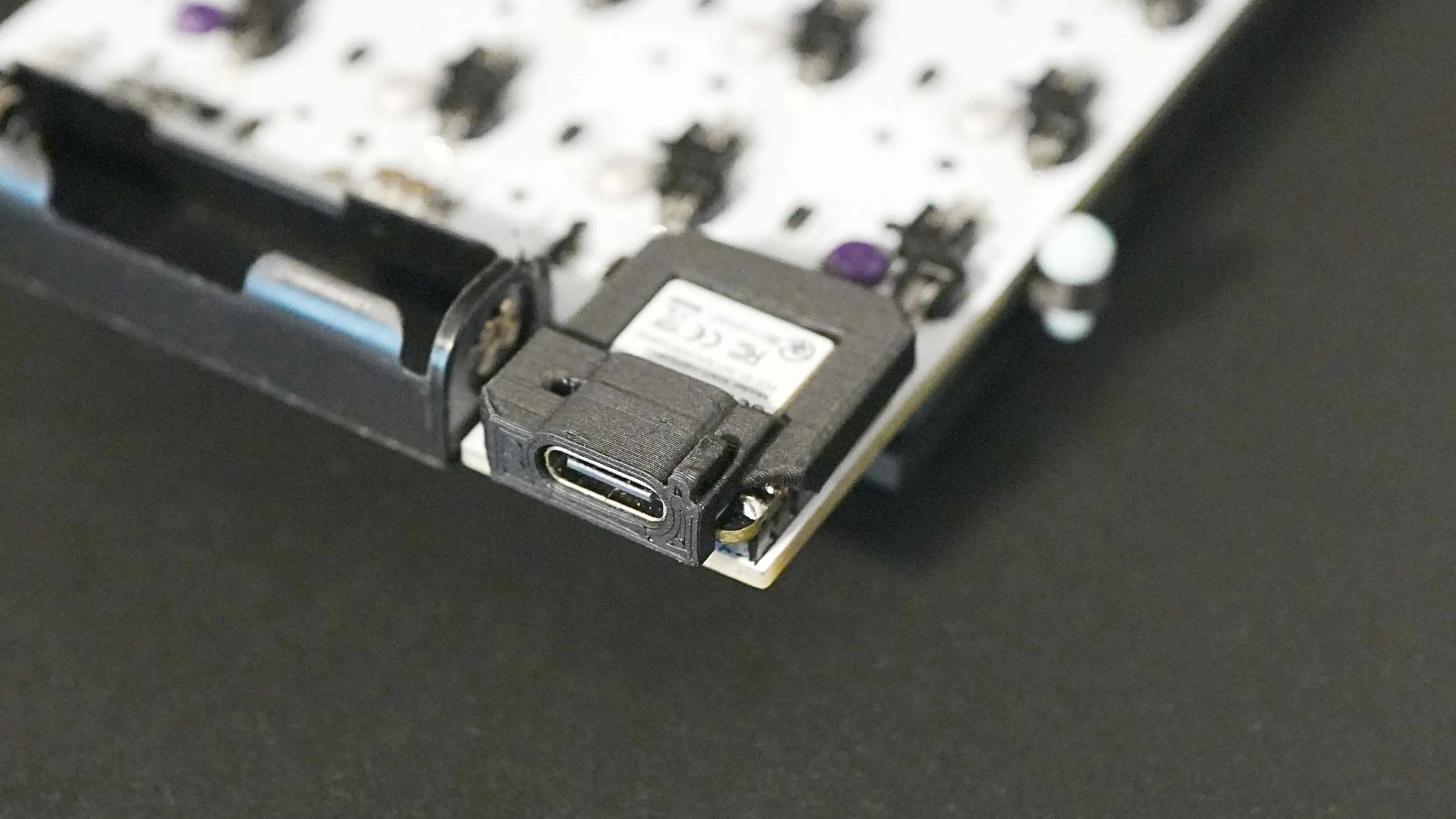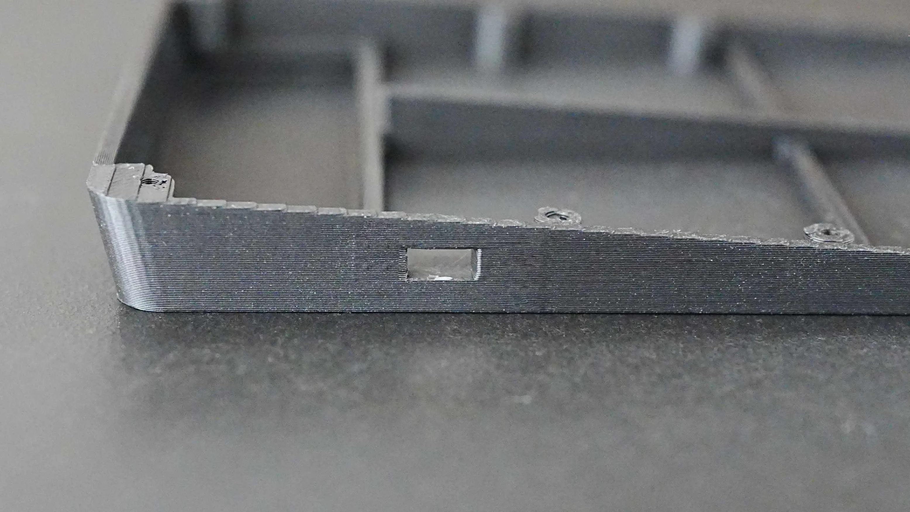 Section titled “ボトムケースのサポート除去”スライドスイッチ取り付け穴に、3Dプリント時のサポート材が残っているのでカッターで取り除きます。