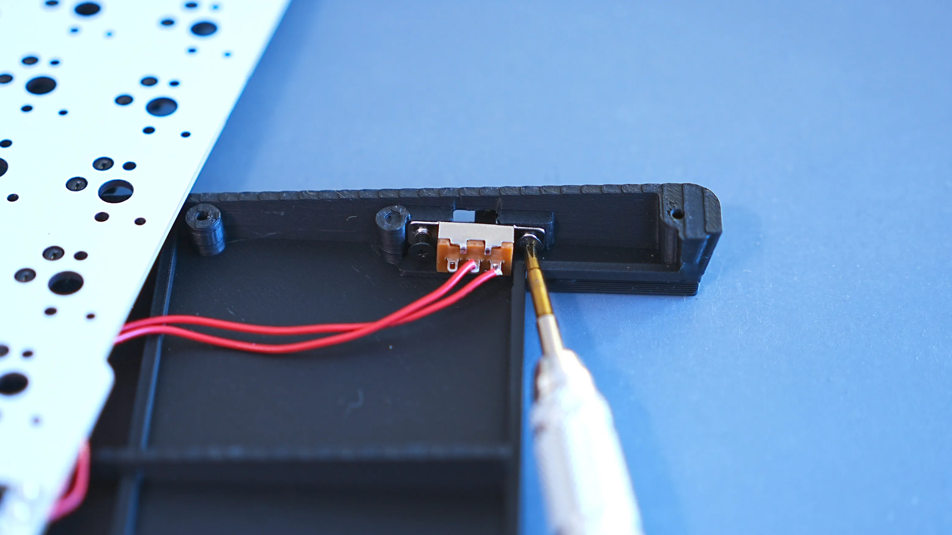 - まずスライドスイッチにネジを取り付けます。