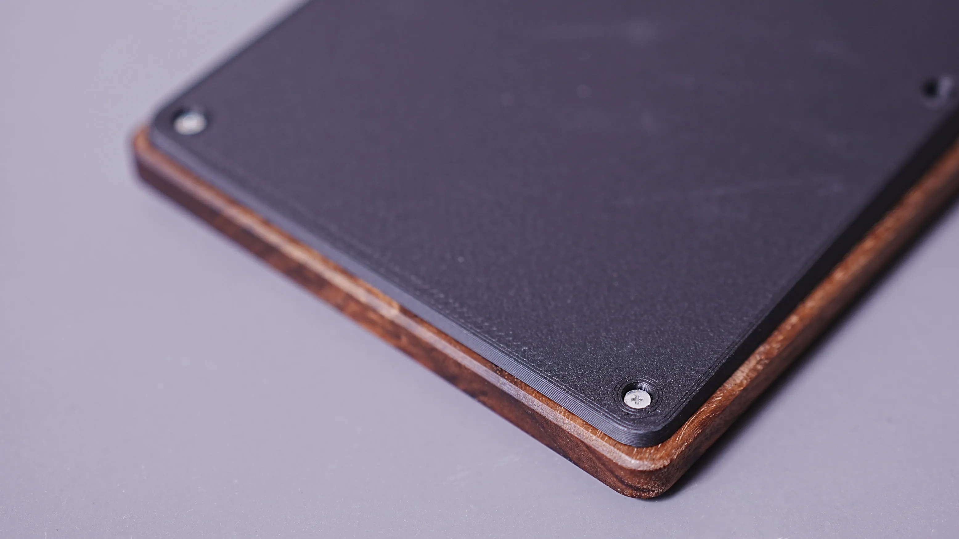 Section titled “ケースの組み立て”- ボトムケース、tadpoleピン、スイッチプレート、トップケース(木製) の順に重ねます。